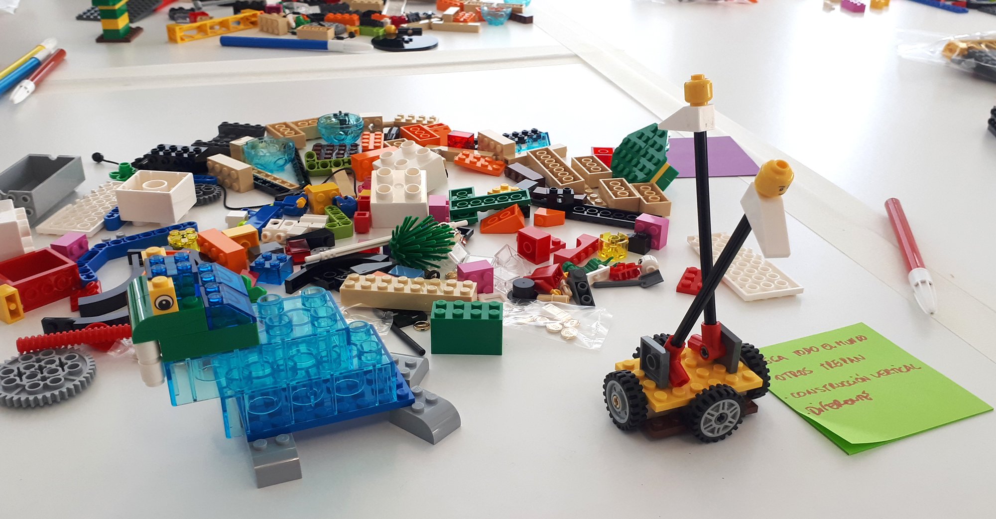 En las formaciones, workshops y talleres que facilitamos con Lego® Serious Play®, las personas participantes construyen soluciones a sus retos profesionales utilizando piezas de Lego. Todas las personas participan y expresan su opinión de manera que se moviliza el talento de cada participante.